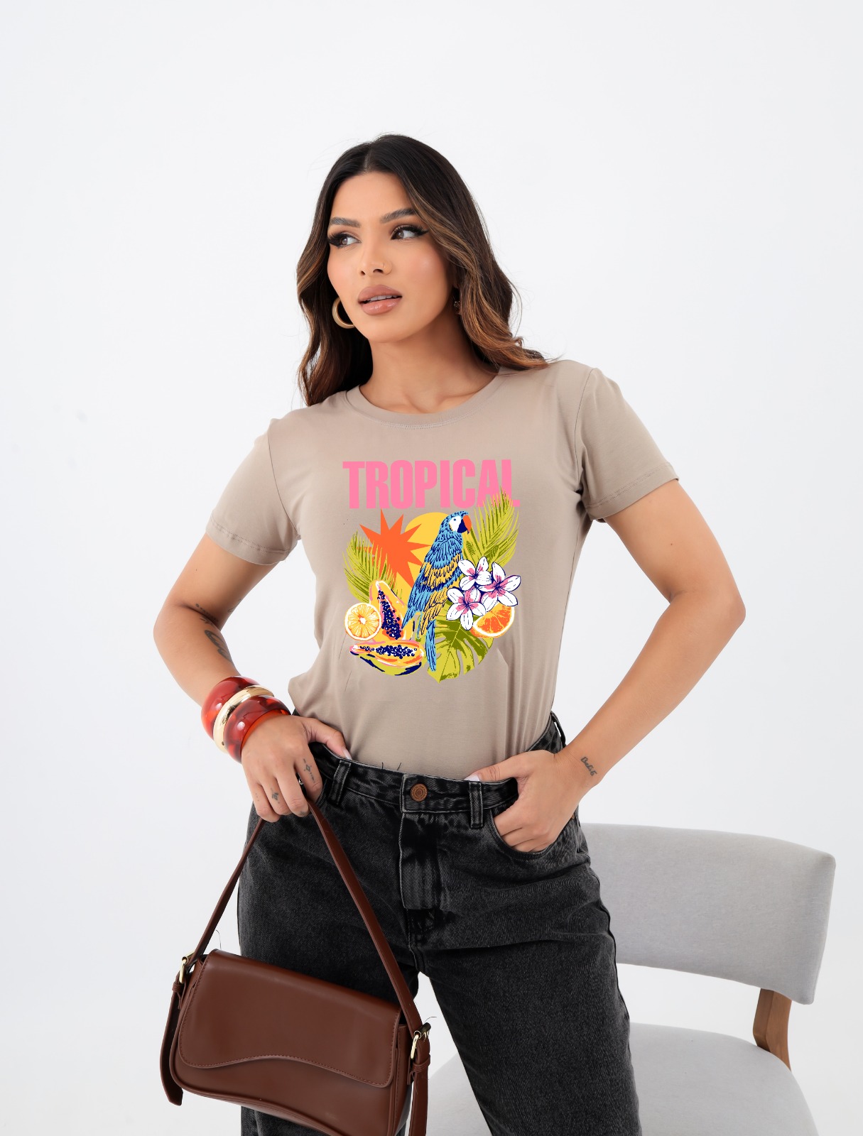 T-SHIRT ARARA TROPICAL DTF BEGE