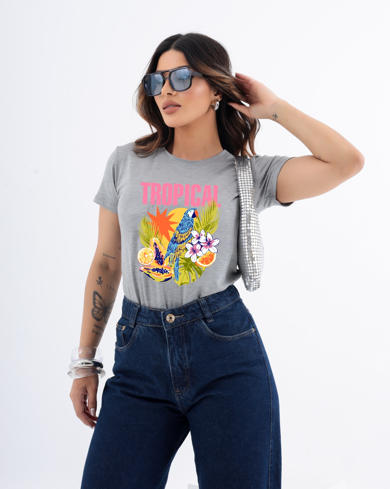 T-SHIRT ARARA TROPICAL DTF CINZA