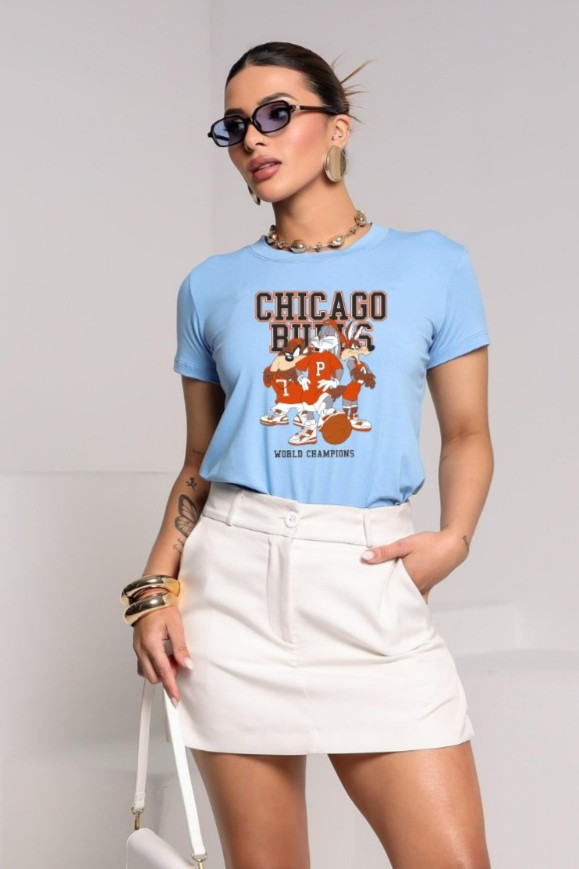 T-SHIRT CHICAGO LOONEY TUNES DTF AZUL BEBÊ