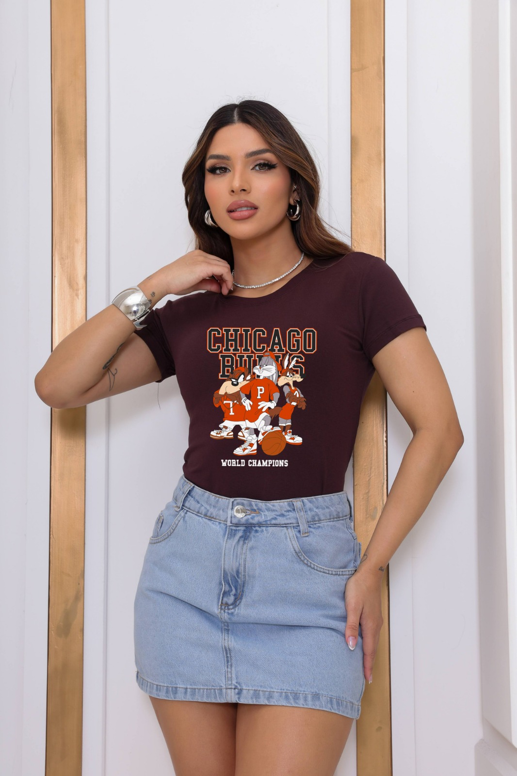 T-SHIRT CHICAGO LOONEY TUNES DTF CHOCOLATE