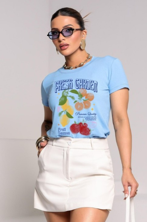 T-SHIRT FRUTAS FRESH GARDEN DTF AZUL BEBÊ