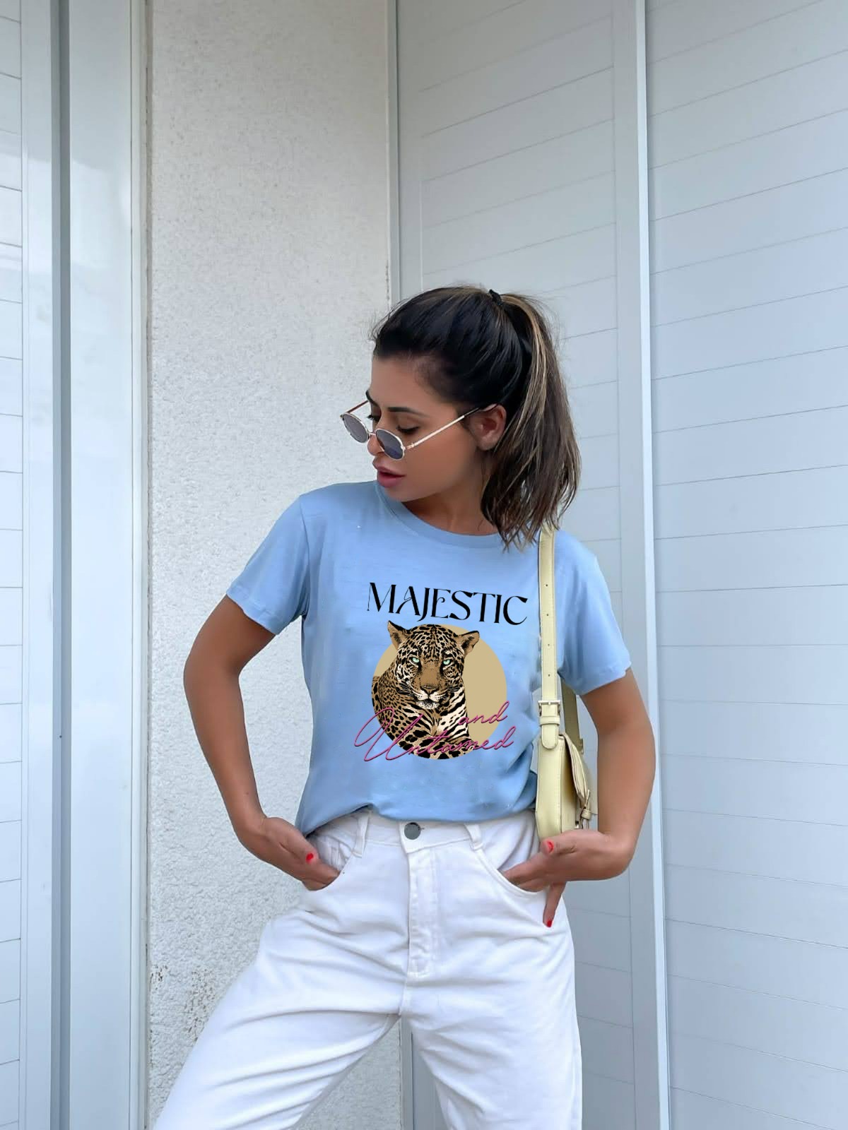 T-SHIRT MAJESTIC LEOPARD DTF AZUL BEBÊ