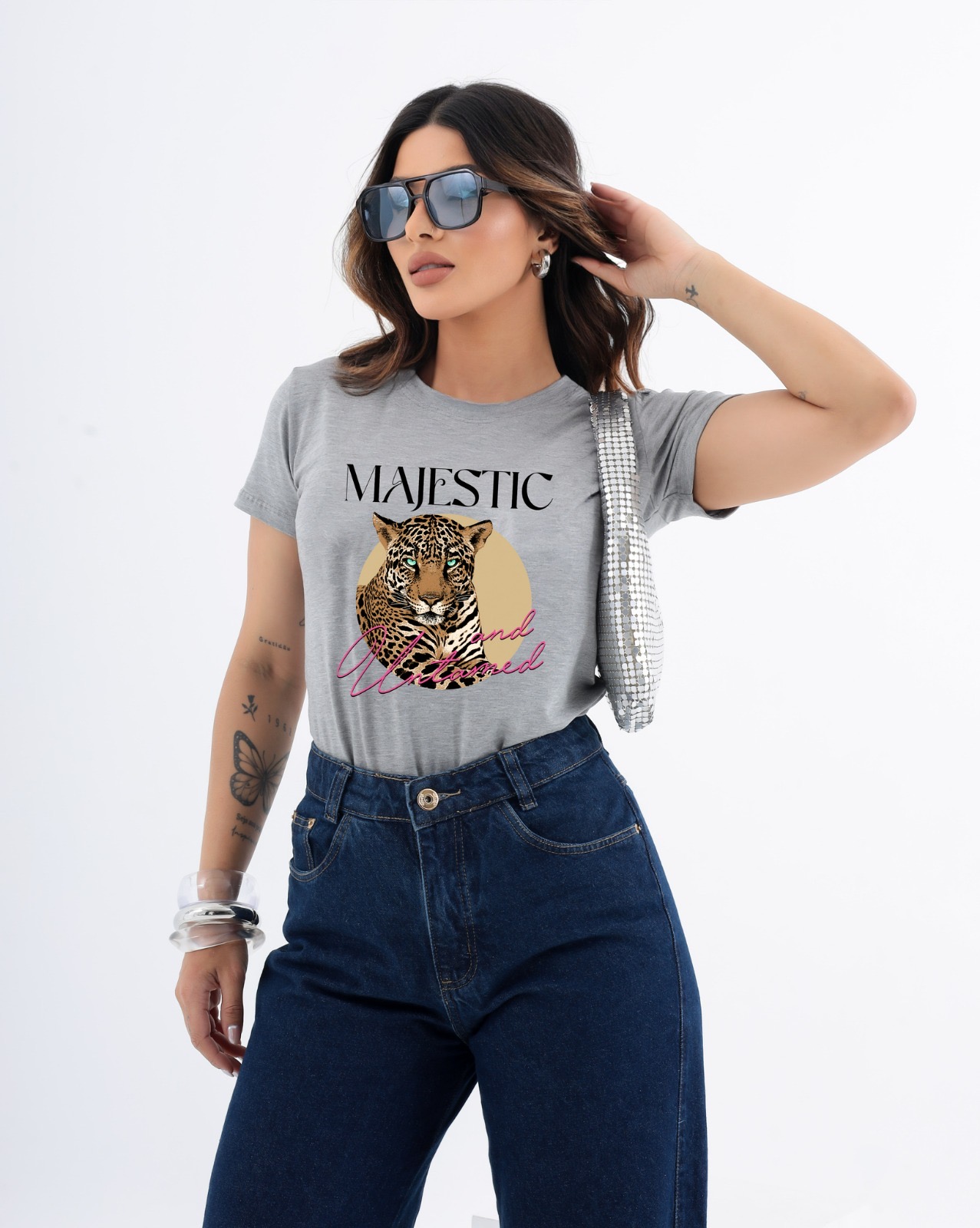 T-SHIRT MAJESTIC LEOPARD DTF CINZA