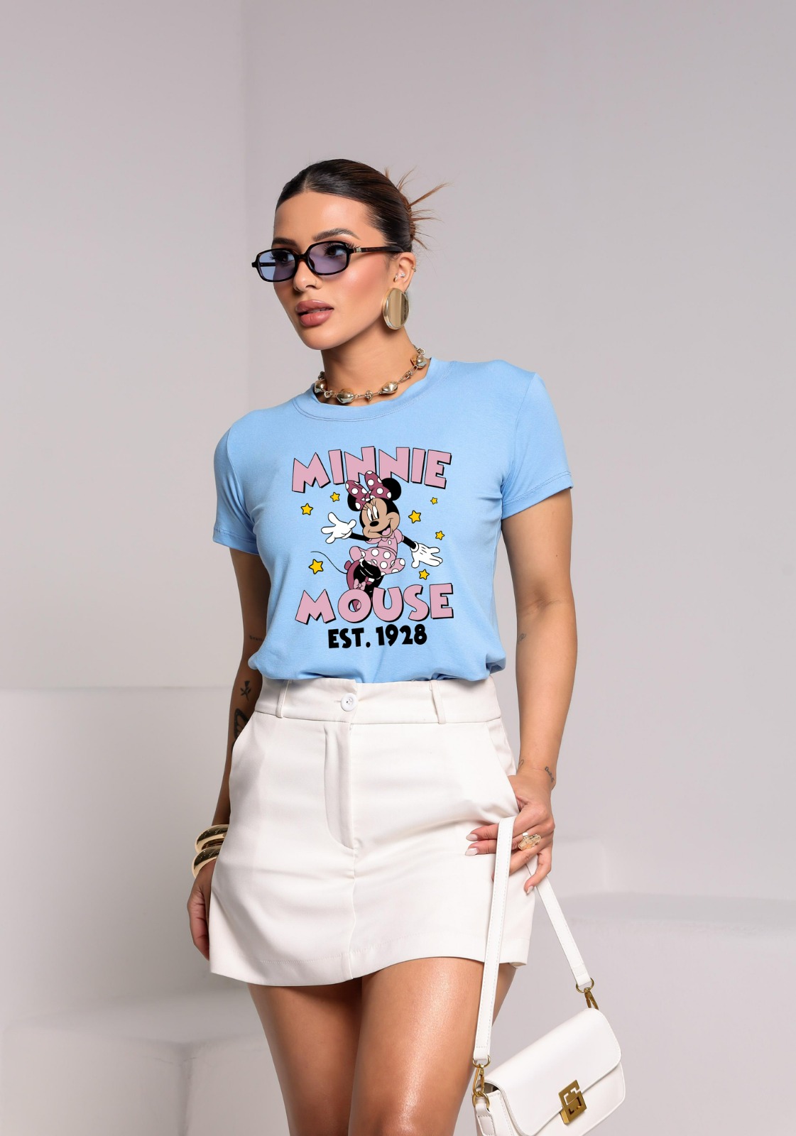 T-SHIRT MINNIE MOUSE 1928 DTF AZUL BEBÊ