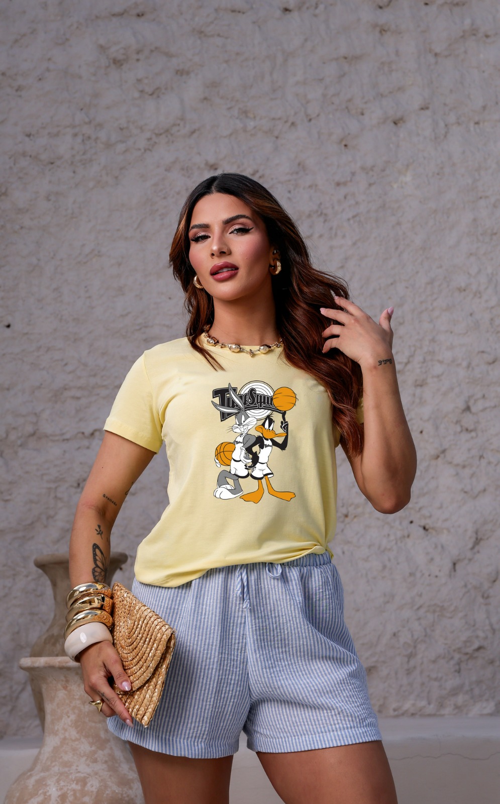 T-SHIRT PERNALONGA E PATOLINO DTF AMARELO BEBÊ