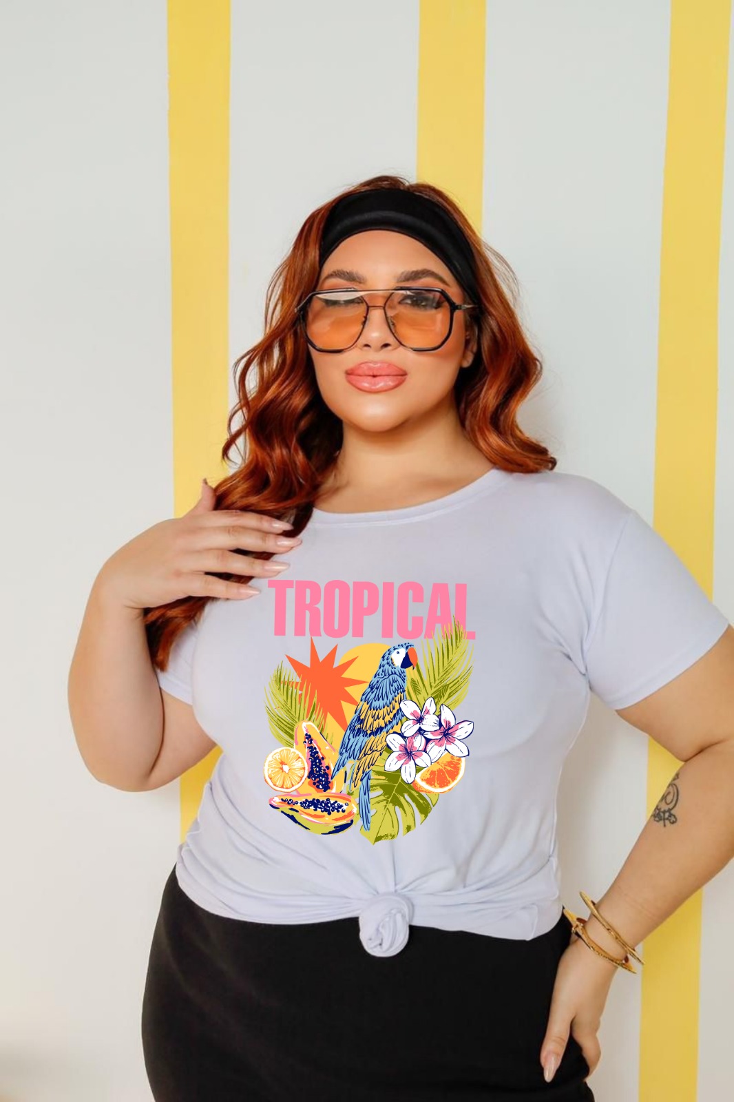 T-SHIRT PLUS SIZE ARARA TROPICAL DTF BRANCO XG