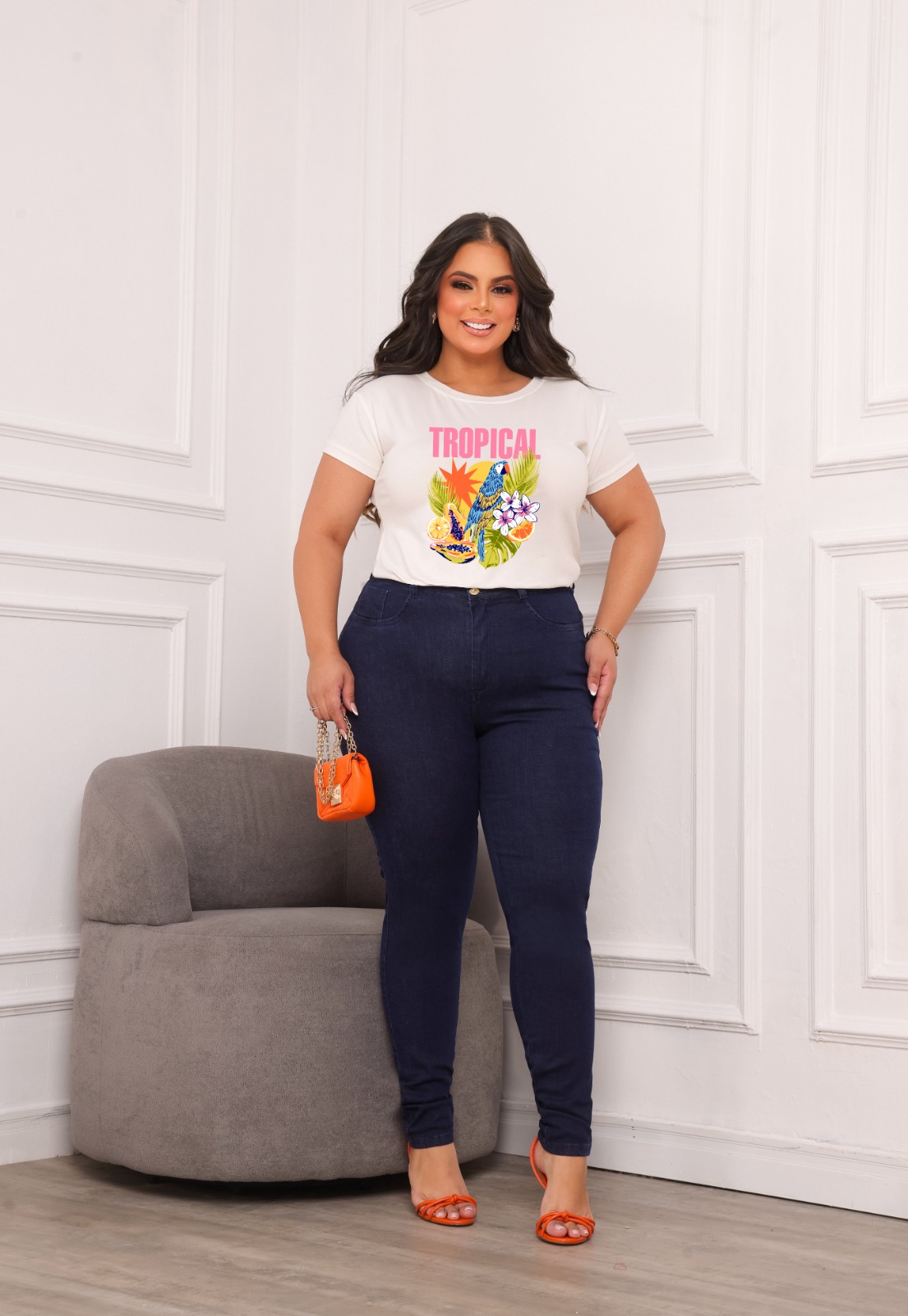 T-SHIRT PLUS SIZE ARARA TROPICAL DTF OFF WHITE XG