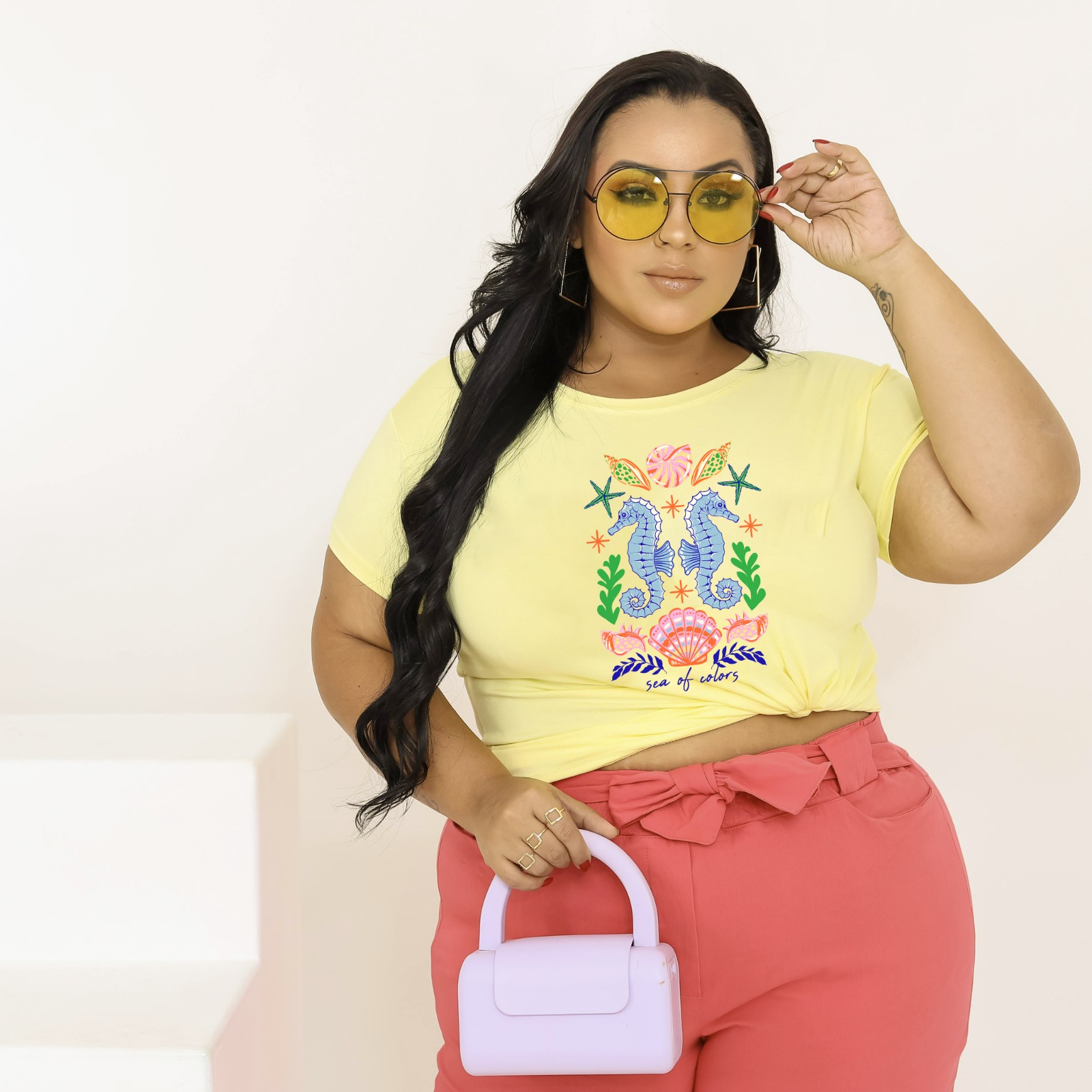 T-SHIRT PLUS SIZE CAVALO MARINHO SE O DTF AMARELO BEBÊ XG