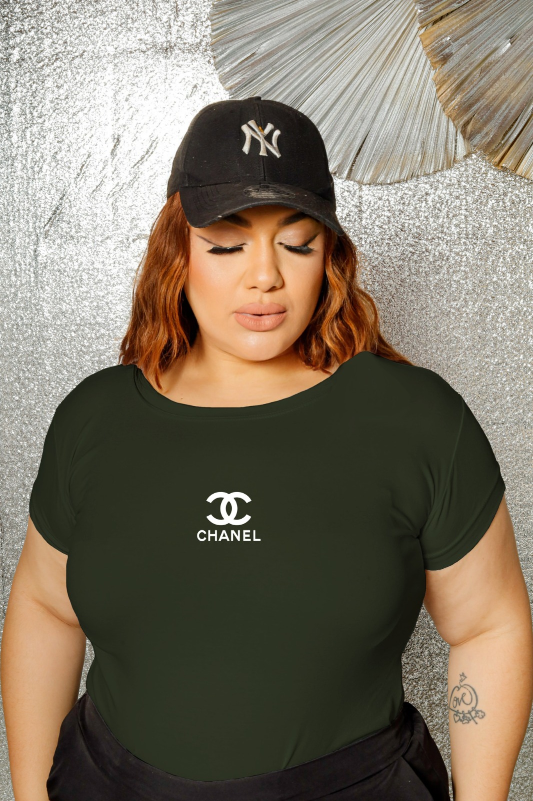 T-SHIRT PLUS SIZE CHANEL DTF VERDE MILITAR XG