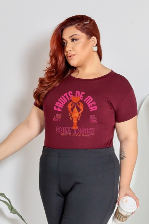 T-SHIRT PLUS SIZE FRUITS DE MEAR LAGOSTA DTF MARSALA XG