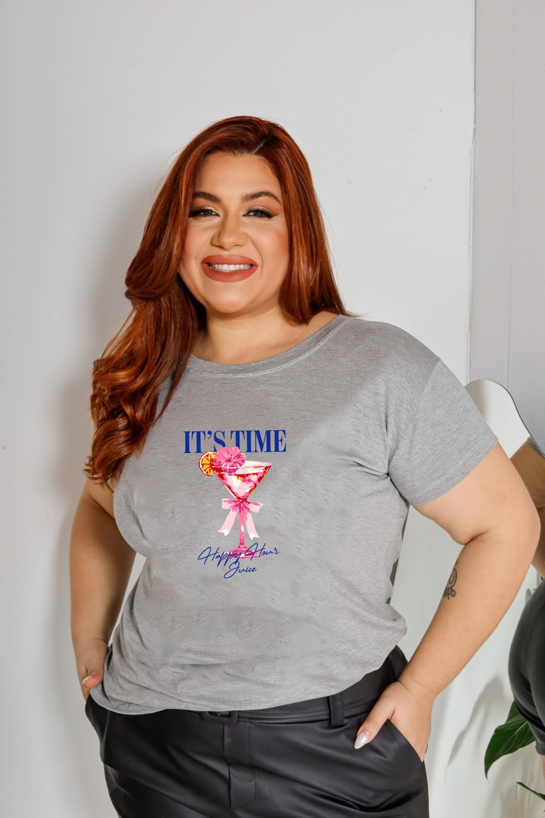 T-SHIRT PLUS SIZE IT'S TIME DRINK DTF CINZA XG