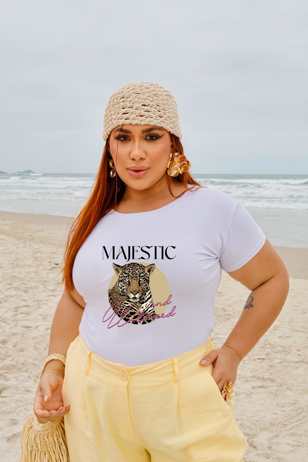 T-SHIRT PLUS SIZE MAJESTIC LEOPARD DTF BRANCO XG