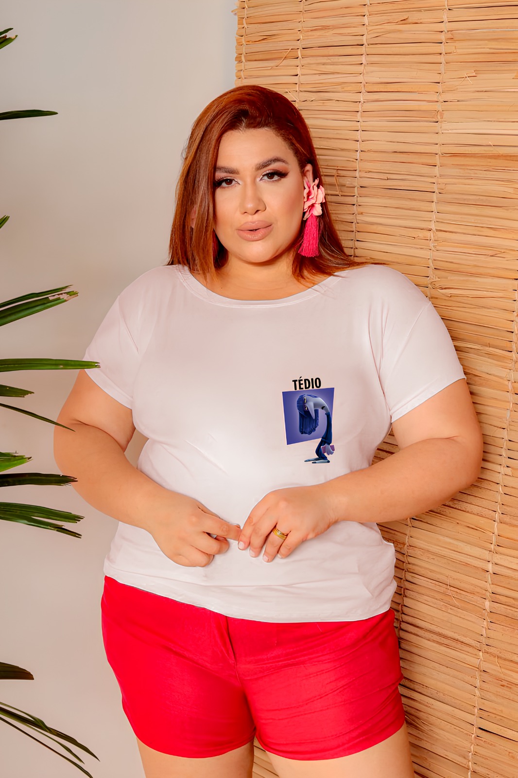 T-SHIRT PLUS SIZE TEDIO DIVERTIDAMENTE DTF OFF WHITE XG