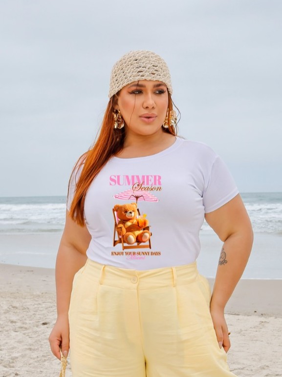 T-SHIRT PLUS SIZE URSO SUMMER SEASON DTF BRANCO XG