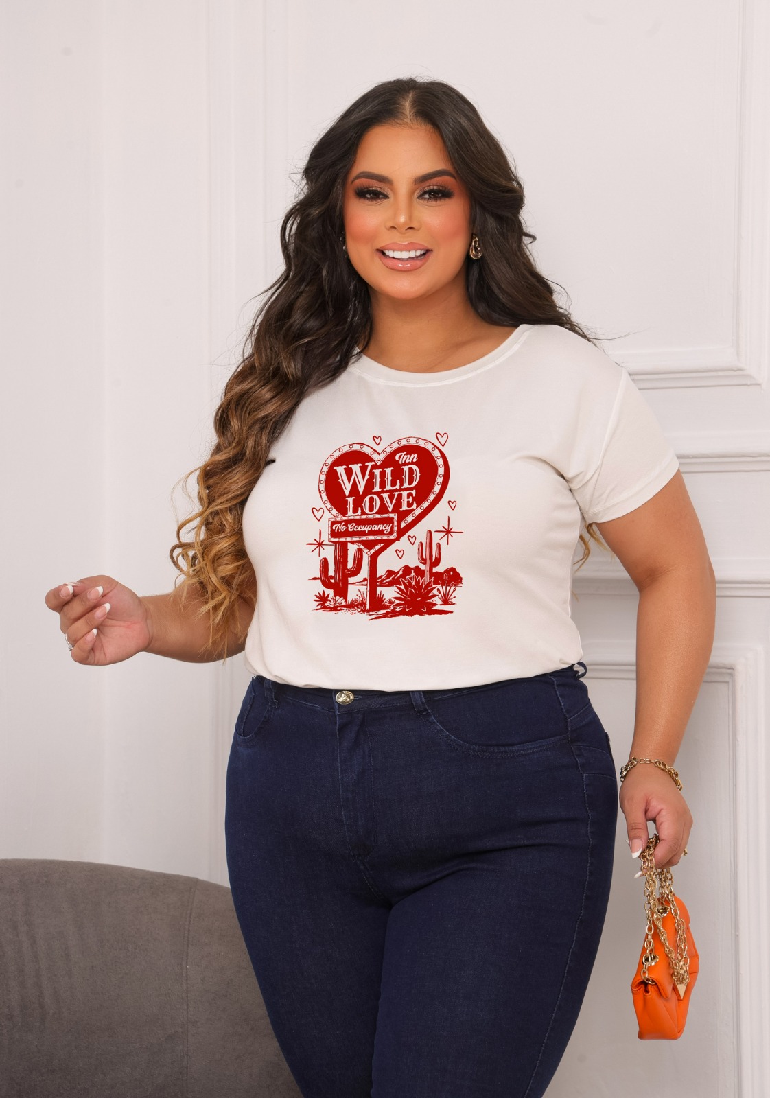 T-SHIRT PLUS SIZE CACTUS WILD LOVE DTF OFF WHITE XG