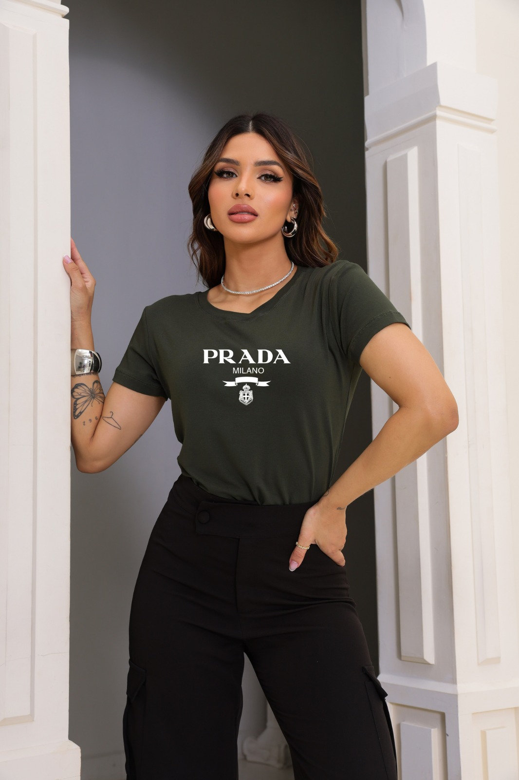 T-SHIRT PRADA DTF VERDE MILITAR